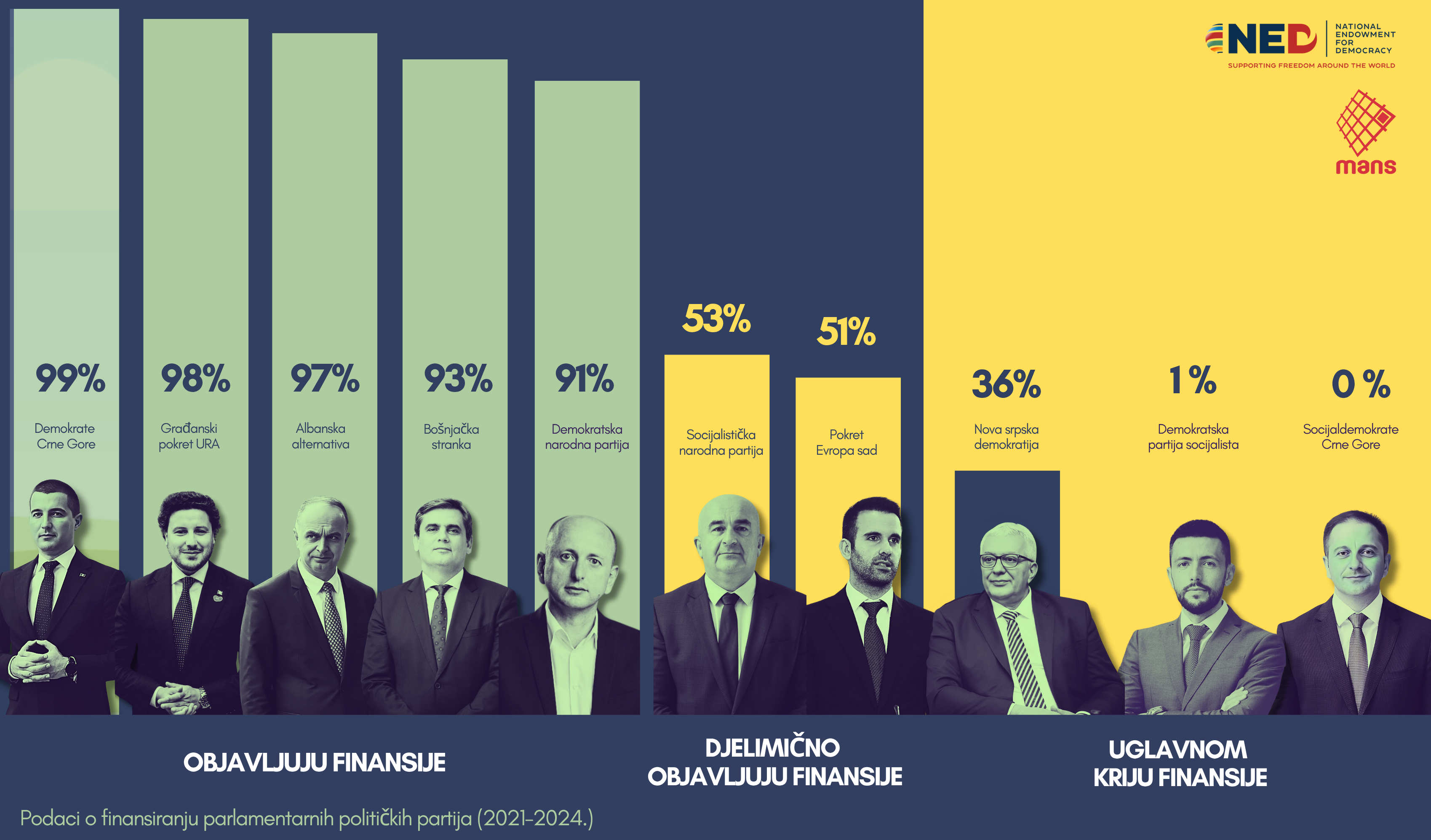 Analiza transparentnosti političkih partija u Crnoj Gori za period od 2021. do 2024. godine, koju je sproveo MANS pokazuje velike razlike u otvorenosti partija prema
