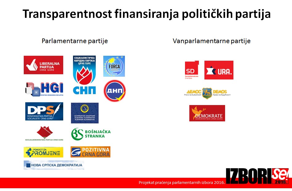 Koristeći Zakon o slobodnom pristupu inforamcijama, MANS je od svih političkih partija, parlamentatnih i vanparlamentarnih, zastražio izvode sa svih bankarskih računa koje posjeduju, za period